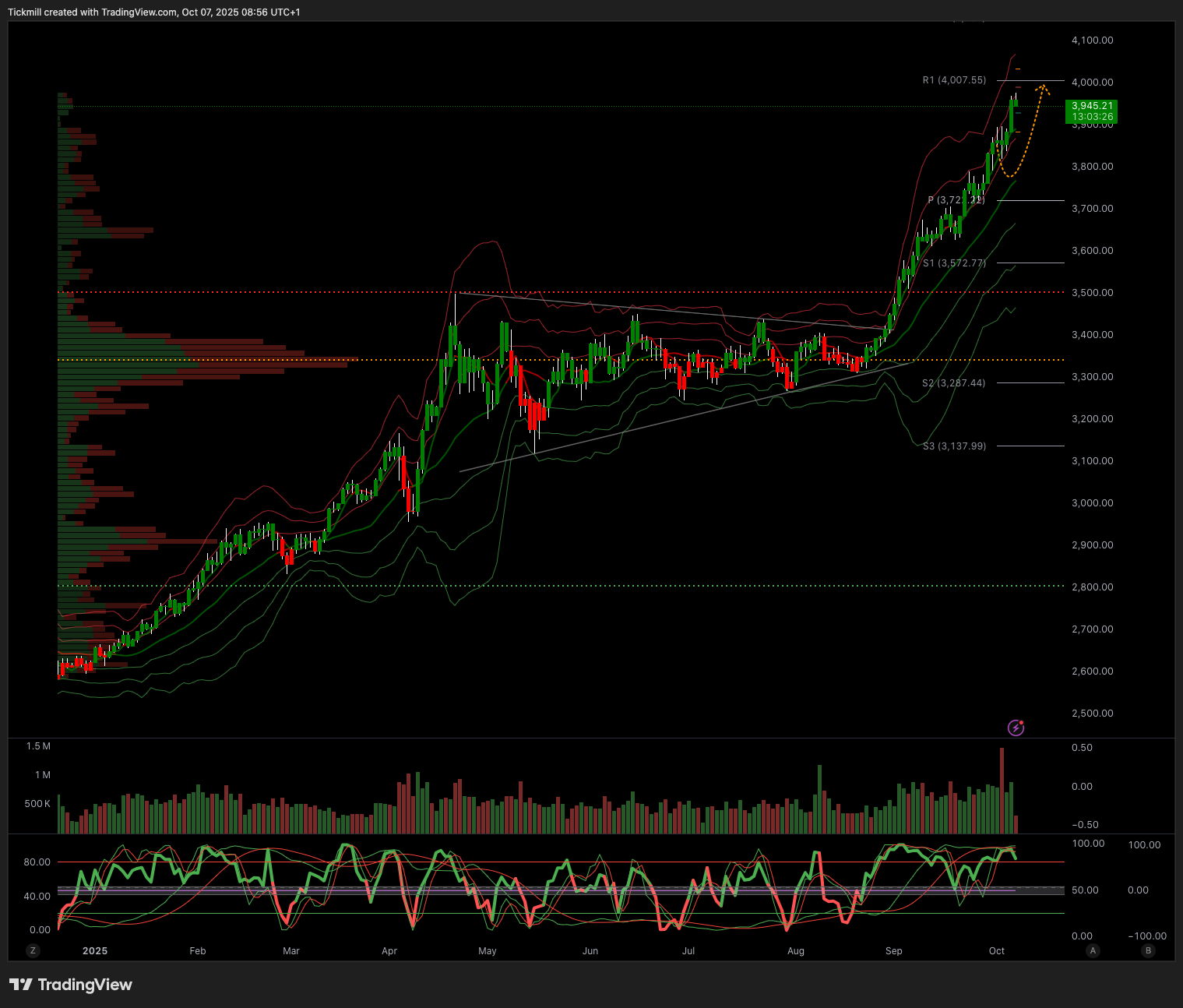Asian markets printed new record highs, primarily driven by technology stocks and the election of Japan’s first female prime minister, considered to be a pro-stimulus advocate, which has further fuelled the rally. The MSCI Asia Pacific Index rose, setting another record, with chipmakers and tech companies leading the gains following Advanced Micro Devices Inc.'s landmark agreement with OpenAI.  Gold prices also saw an increase, reaching record levels with futures touching $4000 as investors sought refuge amid rising political tensions in the US and Europe, however, profit taking has emerged with Gold retreating $25 from the overnight highs. Japanese stocks continued their upward trajectory after Sanae Takaichi's almost assured path to the prime ministership led to a decline in the yen and a rise in long-term bond yields. Declines in Japanese bond futures moderated following a successful 30-year debt auction. Globally, stock markets have consistently achieved new all-time highs despite concerns about a potential US government shutdown and France's deepening political issues. This environment has prompted investors to seek alternatives like gold and Bitcoin, both of which are at record levels. Additionally, a surge in AI-linked collaborations among chipmakers has driven stock prices up, raising bubble concerns reminiscent of the dot-com bubble of the late 1990s. Tech stocks remain a crucial driver of global gains, with the recent AMD-OpenAI partnership being the latest in a series of significant data centre initiatives this year. This follows Nvidia Corp.'s announcement last month of plans to invest as much as $100 billion in OpenAI to meet the growing demand for AI computing infrastructure. With markets in China and Hong Kong closed on Tuesday, attention turned to Japan. Takaichi's victory energised markets on Monday, leading to a surge in stocks amid expectations of increased fiscal stimulus, while currencies and bonds weakened. The yen hovered near the critical 150-per-dollar mark, a significant psychological milestone, as options traders became the least bullish on the currency in over three years, anticipating continued depreciation under the new government.